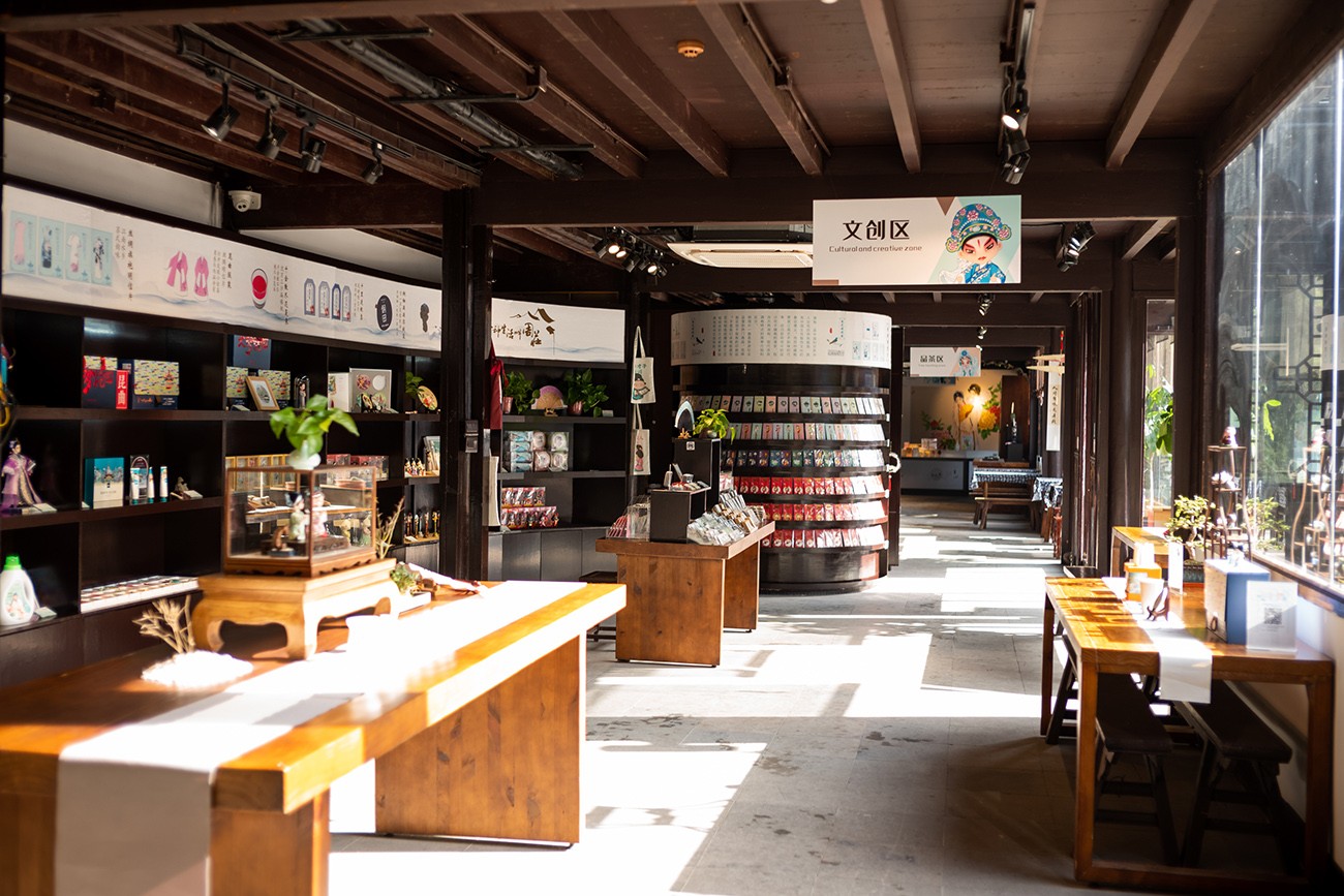 This cultural and creative store offers a variety of  Jiangnan water town style products, including tea cups, embroidery, Kunqu opera and Zhouzhuang stoves.